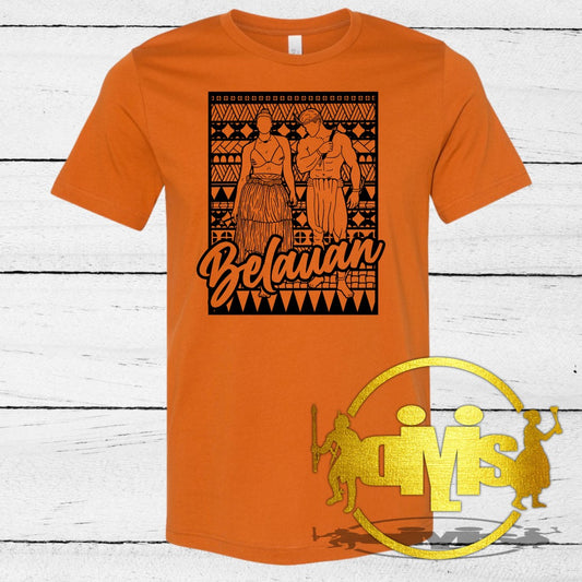 TRADITIONAL PALAUAN MAN & WOMAN WITH TRIBAL BACKGROUND
