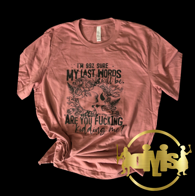 I'M 99% SURE MY LAST WORDS WILL BE ARE YOU FUCKING KIDDING ME | MAUVE SHIRT