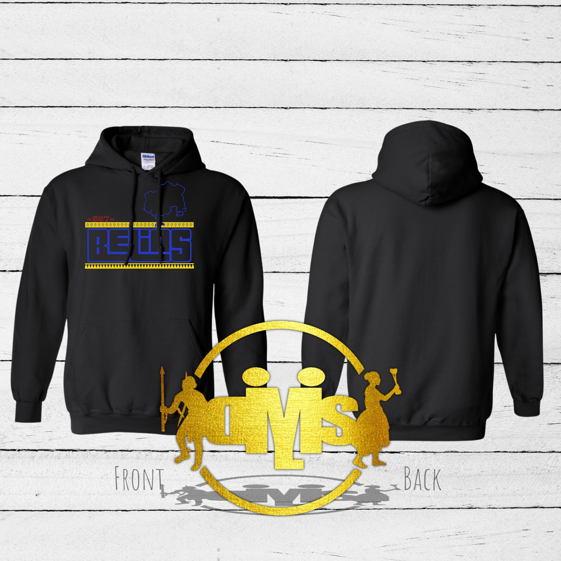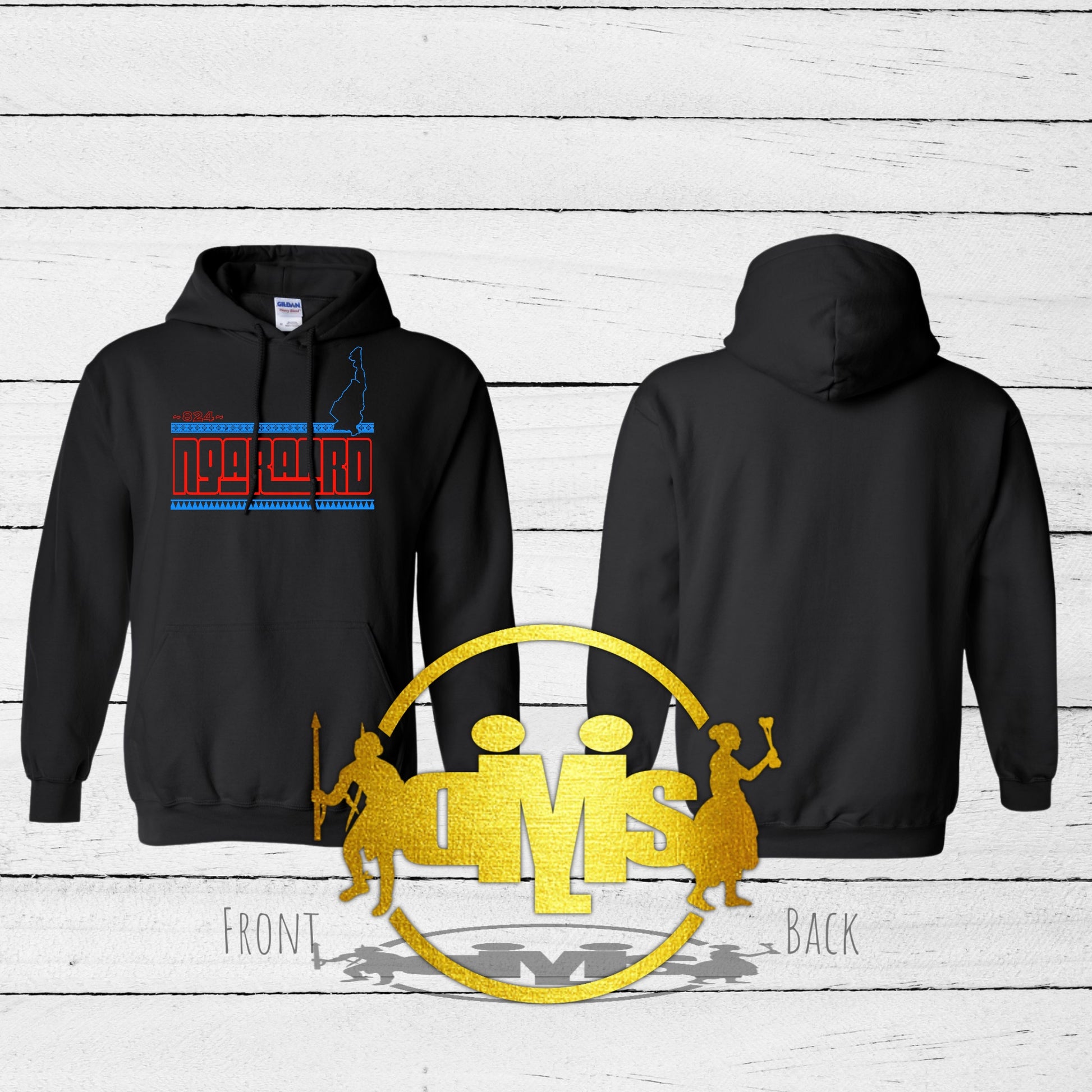 Available on a black hoodie and print color options.