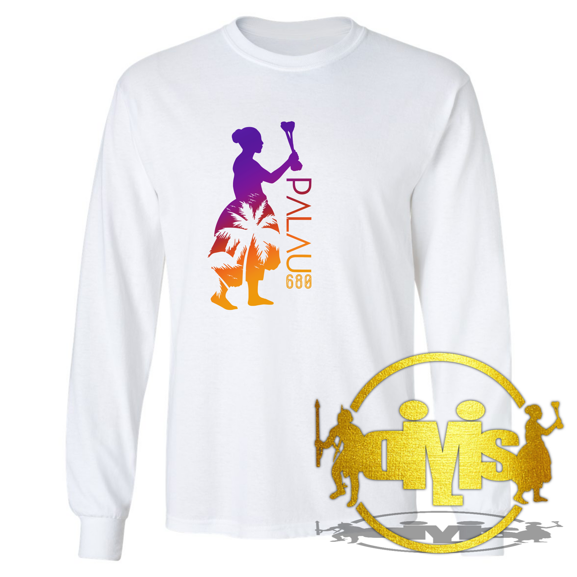 Palau 680 Woman with Coconut Tree Silhouette Long Sleeve Shirt